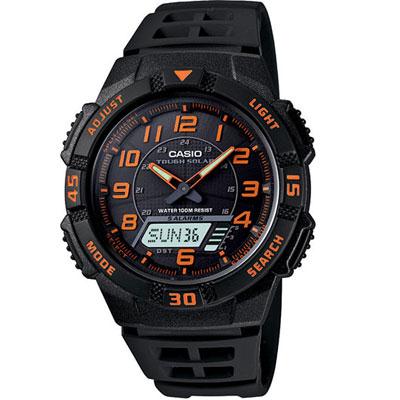 Casio Tough Solar Ana-Digi Watch … Utilizing a unique Self- Charging solar power system this sporty analog/digital combination model provides plenty of functionality. A host of features such as 48-city world time 5 alarms stopwatch and dual countdown timers make this a versatile timepiece for almost any sport outing. Silver stainless steel band analog and digtal watch with black face. 100M water resistant World time (48 city) Dual countdown timers (for interval training).