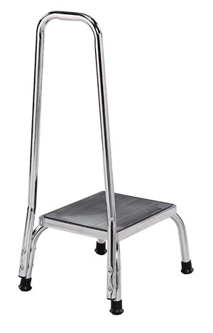 Attractive chrome-plated finish. Non-tip design. Features high handle platform and steel-reinforced rubber tips. Non-skid, rubbed rubber mat. 250 lb weight capacity.