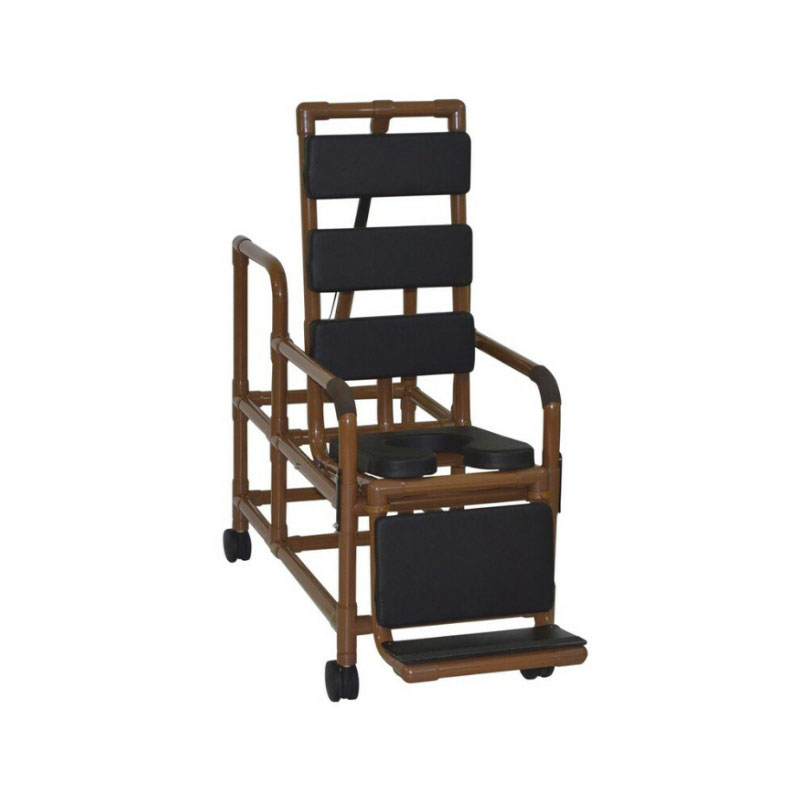 **NEW** WOOD TONE – Tilt “n” space shower chair – TOTAL Black padding shower chair w/ open front soft seat & elevated leg extension, 250 lbs wt cap