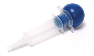 Contoured finger grips and pliable bulb with textured surface provide stable grip and allow maximum control of drawn or expelled fluids. Clear and easy-to-read graduations are in 5cc (mL) increments, up to 60cc. Comes with tip protector. Sterile, packaged in poly pouch. Latex free (LF).