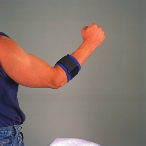 1/8″ blue neoprene strap with loop-lock closure. Provides local pressure to muscle of the forearm.