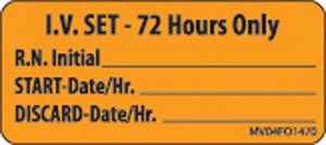 IV Set – 72 Hours Only Labels For Pharmacy, 2¼” x 1″, Fluorescent Orange, 420/rl