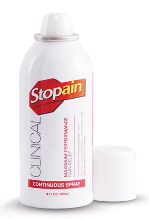 Stopain® Clinical 360° Continuous Spray, 4 fl. oz., 24/cs (US SALES ONLY) (For resale to Healthcare Professionals only. Prices should only be viewable when a healthcare professional is logged in to an account on a dealers website. Products cannot be sold to retail stores or online retailers such as Amazon, Walmart, eBay, Alibaba, etc.)