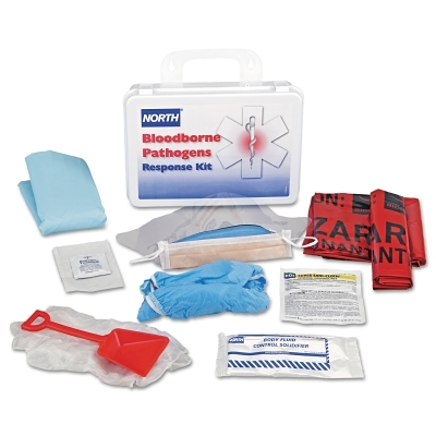 Equipped with the necessary supplies to clean a spill containing bloodborne pathogens|Convenient carry handle|||