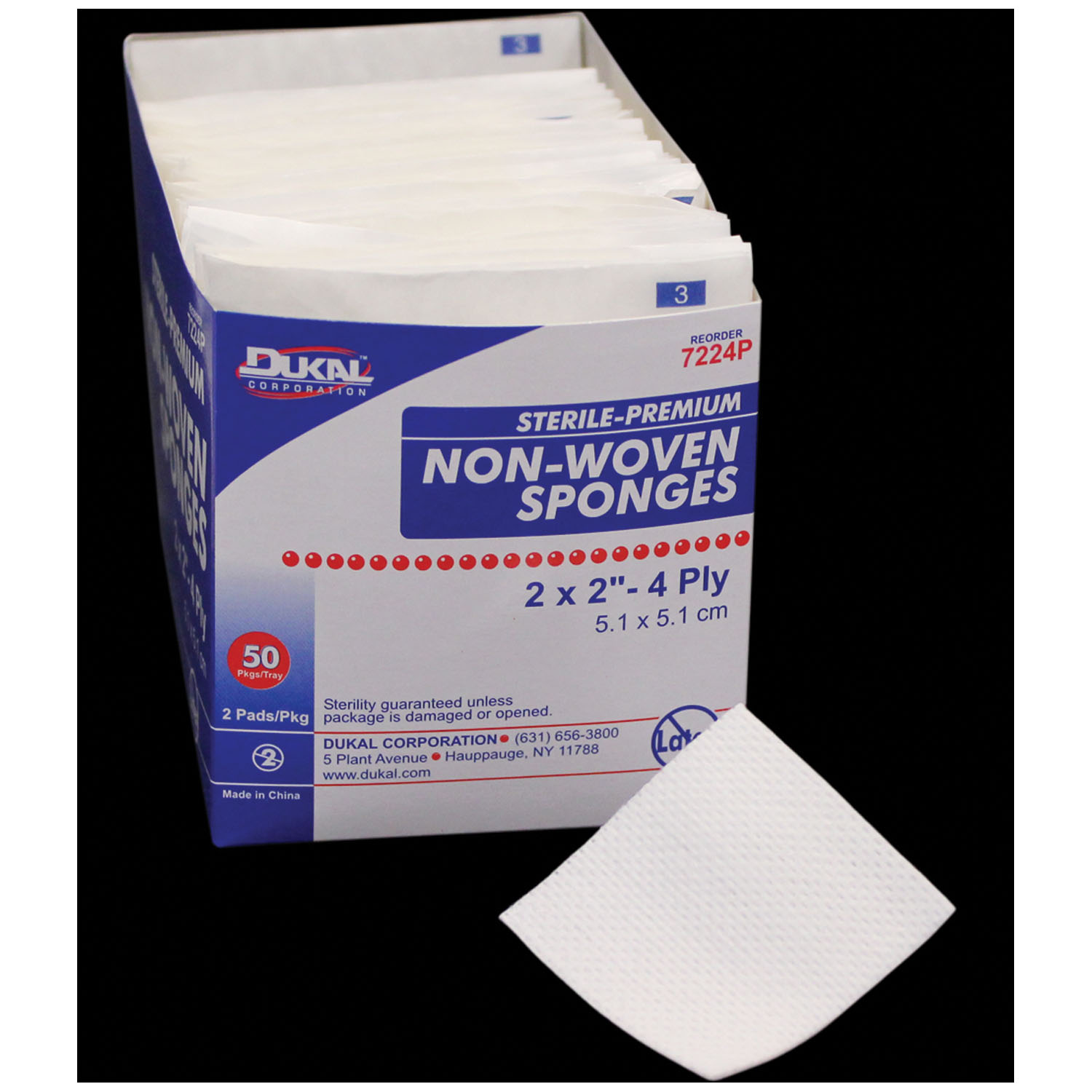 Sponge, 3″ x 3″ Non-Woven, Premium, Sterile, 4-Ply, 2/pk, 40 pk/bx, 30 bx/cs