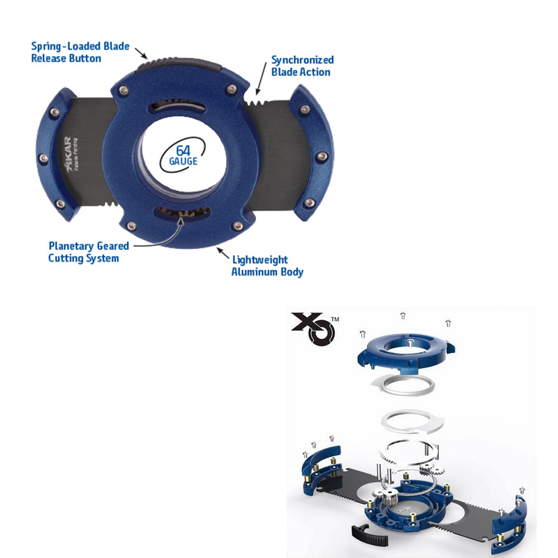 The XO is a cutting machine, inspired by timeless design principles. The dual stainless steel blades operate on a patent pending planetary gear system, ensuring the blades open and close in perfect harmony, providing a guided and clean cut every time. The distinct, round aluminum body of the XO is built for relentless durability and exceptional performance. Engineered to simplify the standard double guillotine style cut.